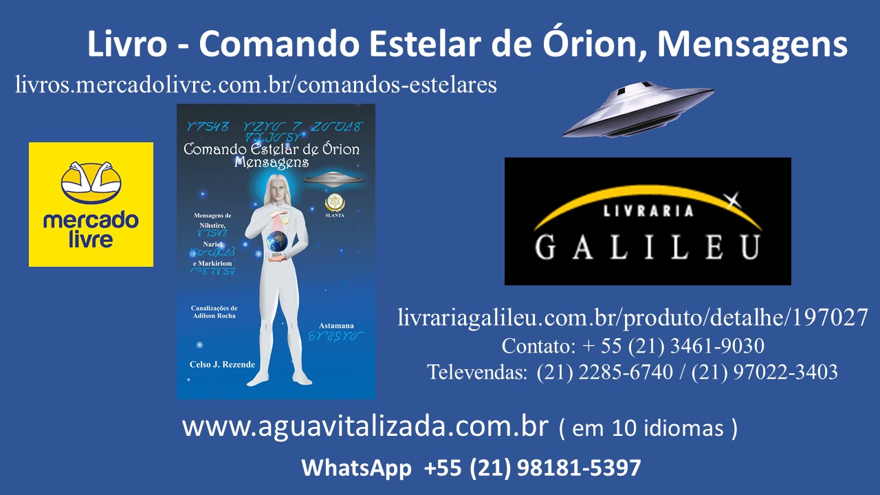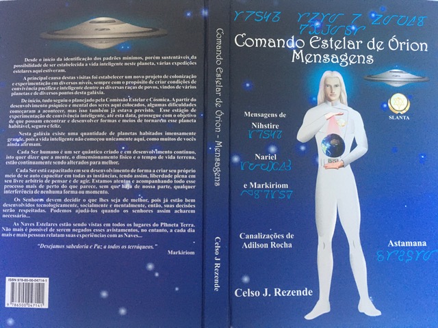 As mensagens de Seres evoluídos, da Nave SLANTA, do Comando Estelar de Órion, foram canalizadas pelo contactado e médium Adilson Rocha e estão transcritas em 184 páginas, fartamente ilustradas, no livro “Comando Estelar de Órion, Mensagens”, com ensinamentos, exercícios energéticos de sintonização e alinhamentos dos corpos extrafísicos.