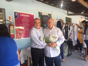 Lançamento da segunda Edição do Livro do Herman Koltz, realizado no Lar de Frei Luiz em junho/2019. Foto do autor junto com o médium que incorpora o Dr. Hermann Koltz.